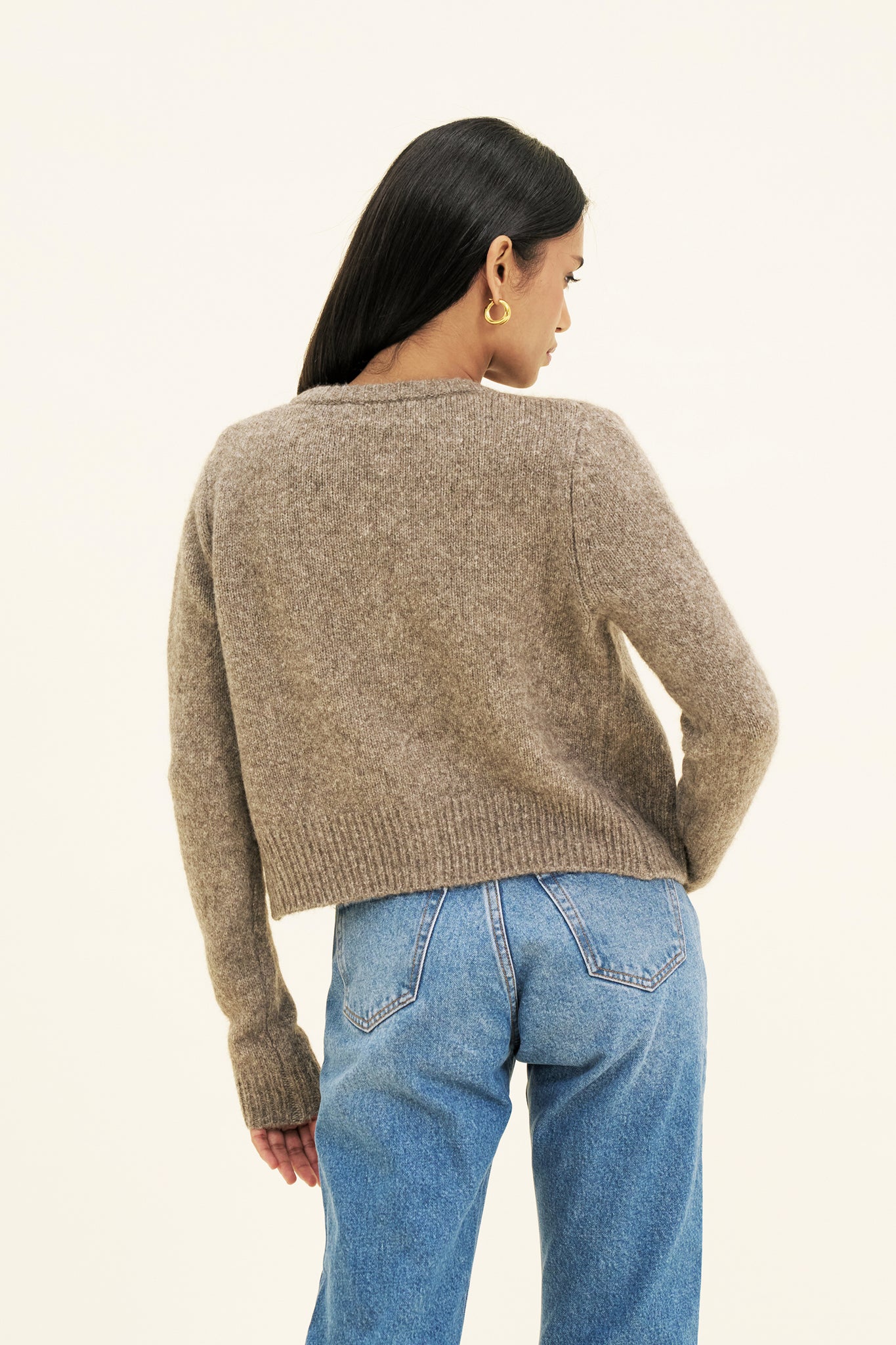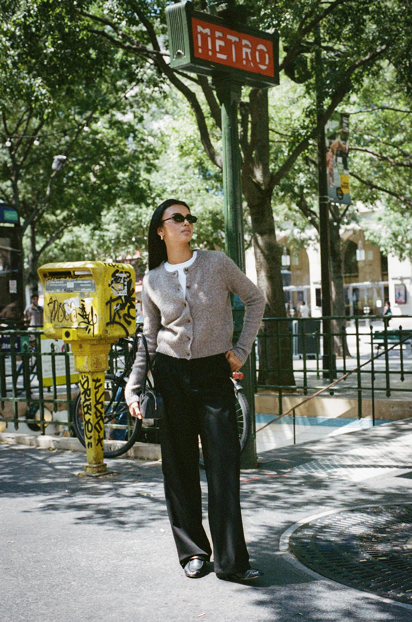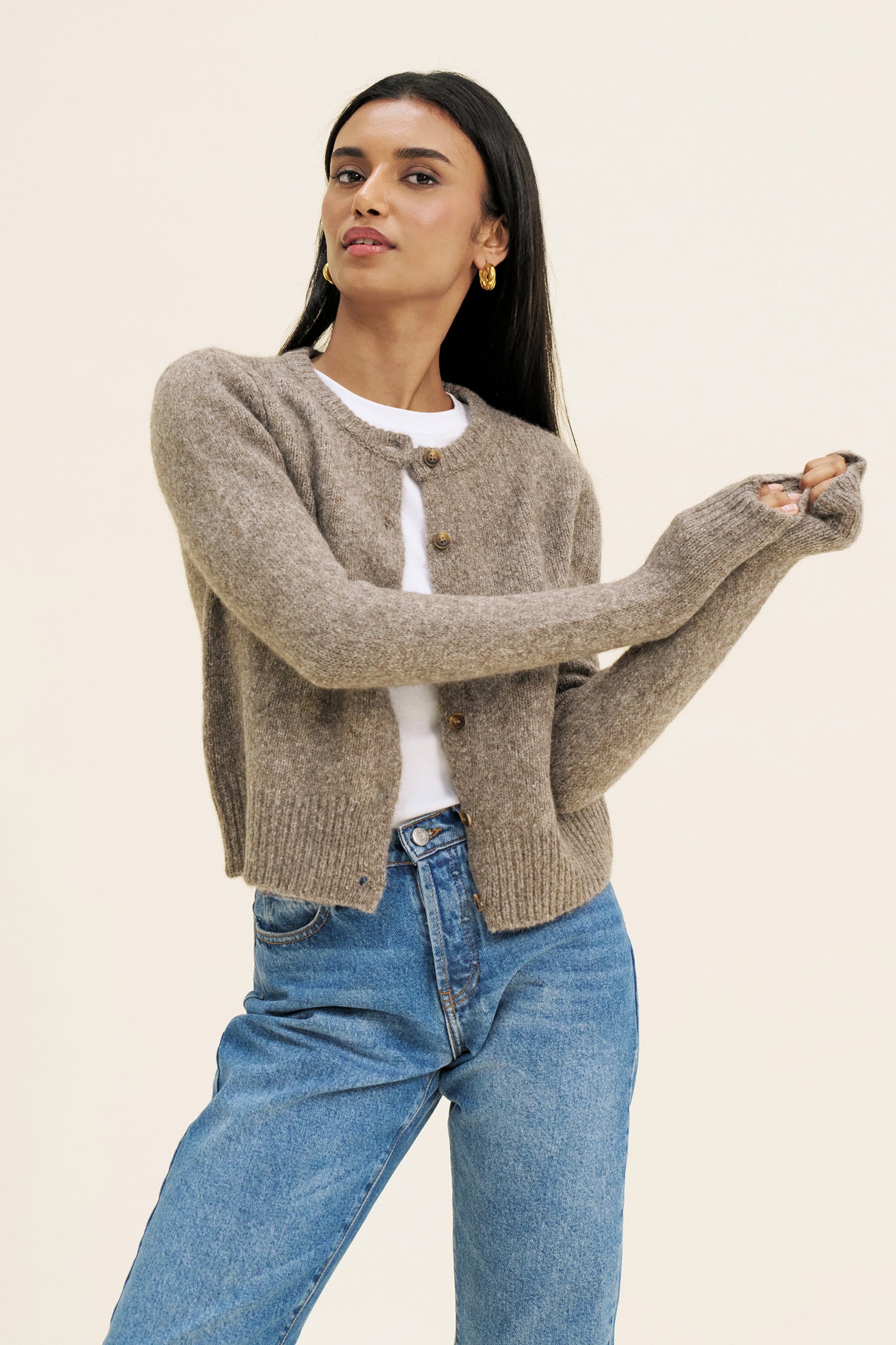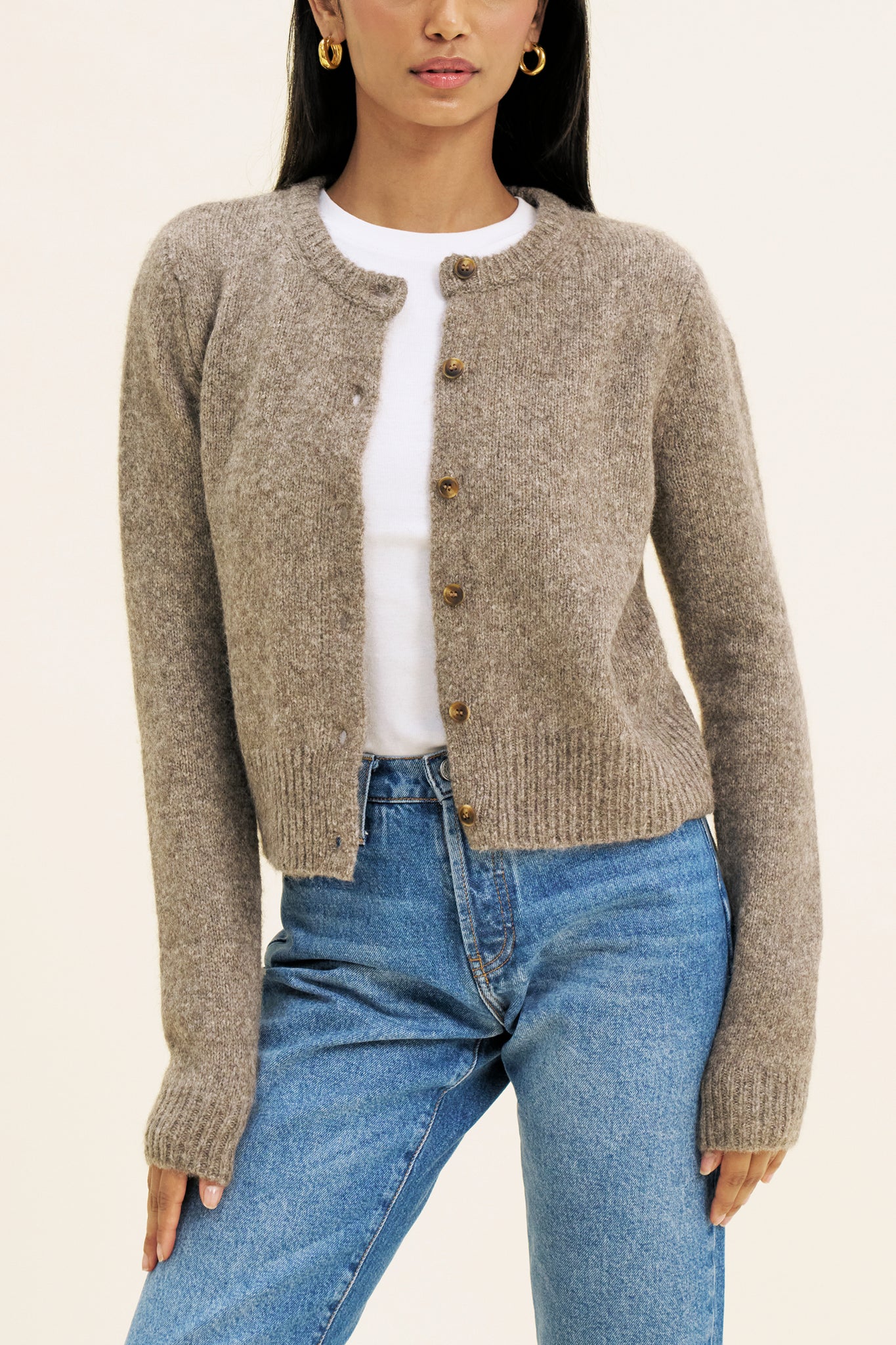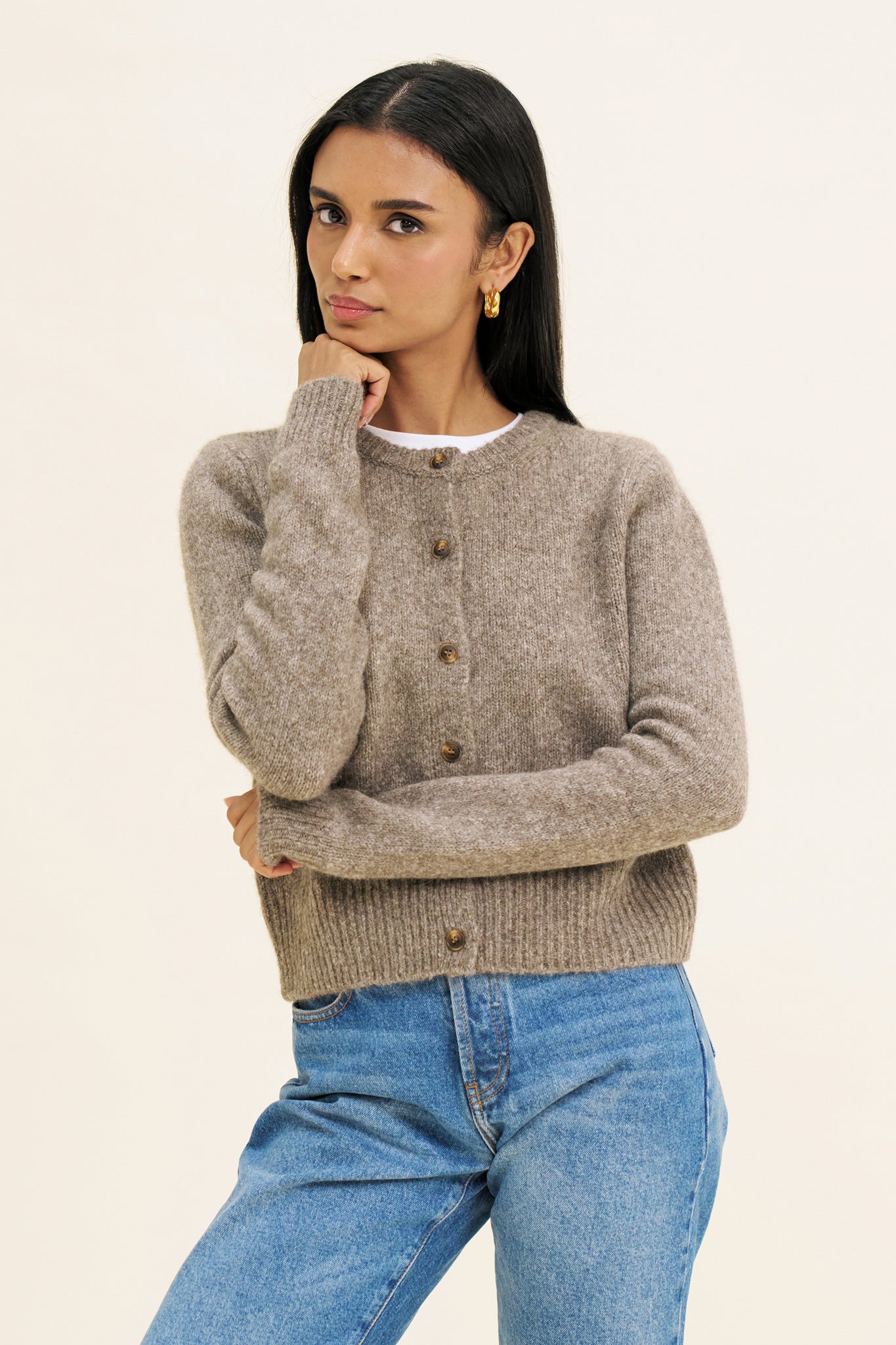 The Amira is the sister to our Aurora Knit in cardigan form. So fluffy and soft in an incredible blend of Yak, Alpaca and Merino. Model wears size S, she is 5'9 / 180cm.