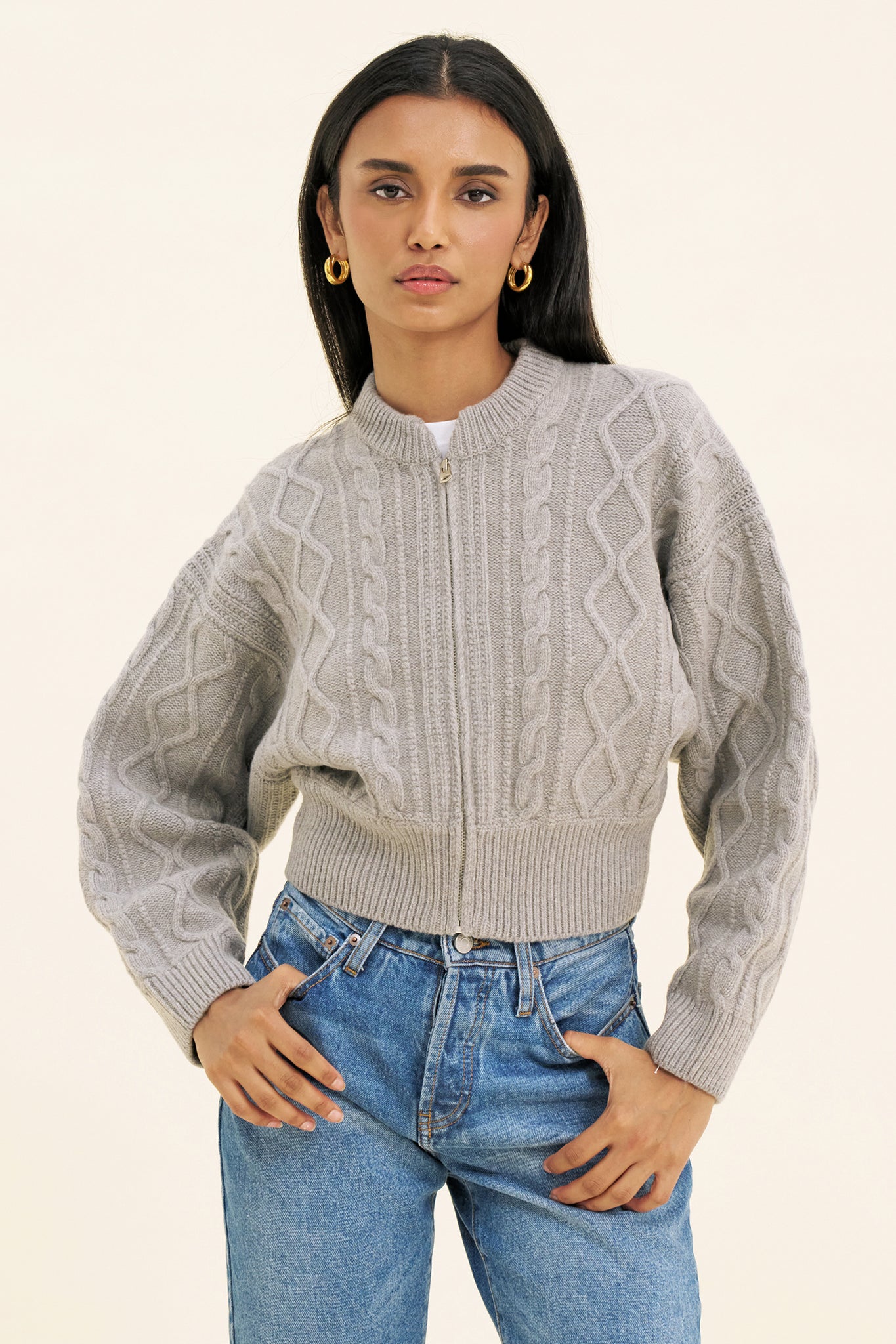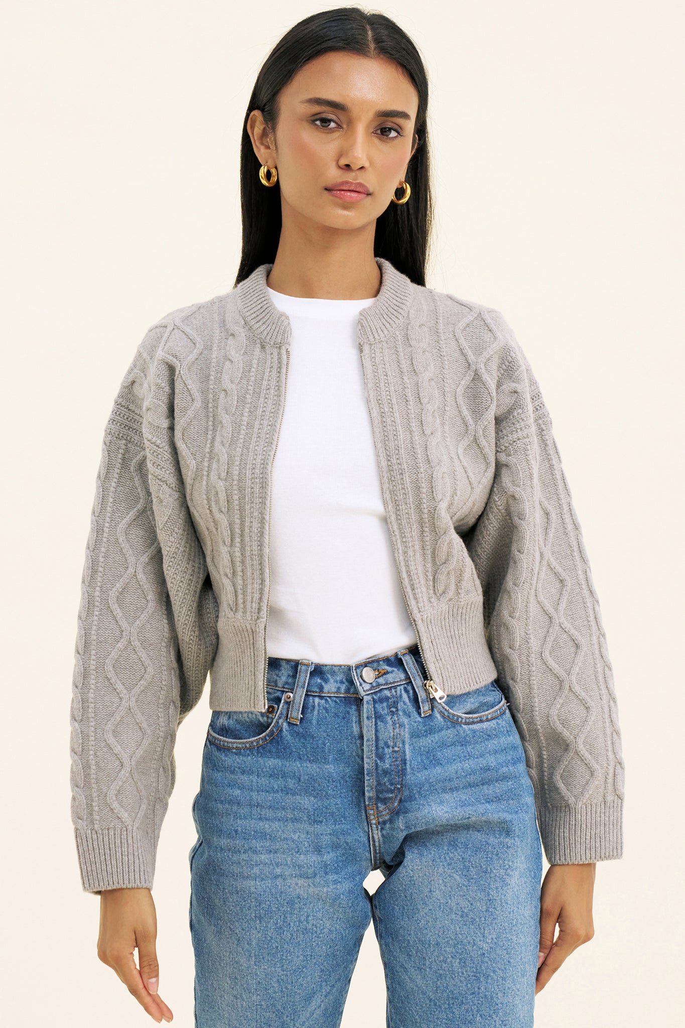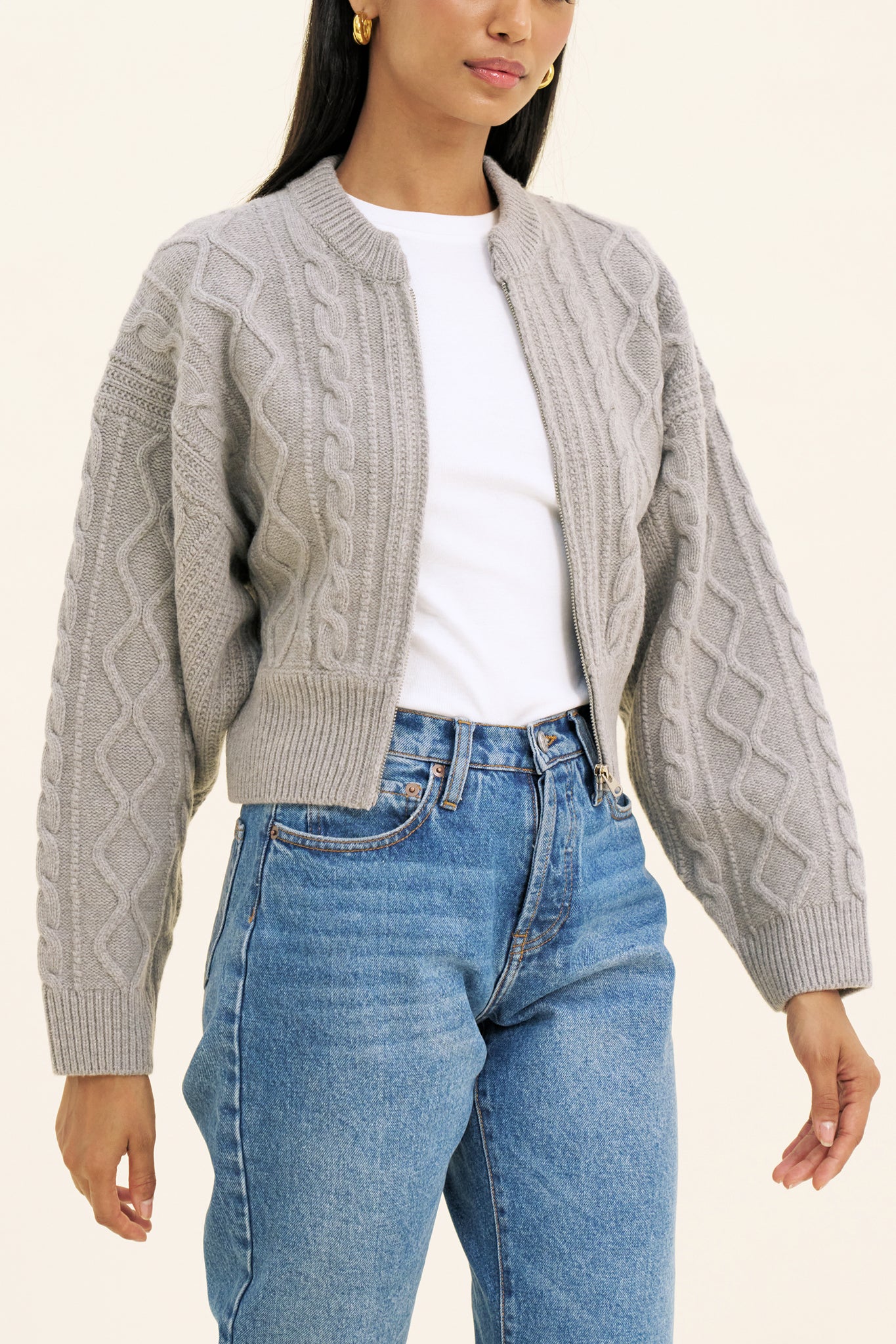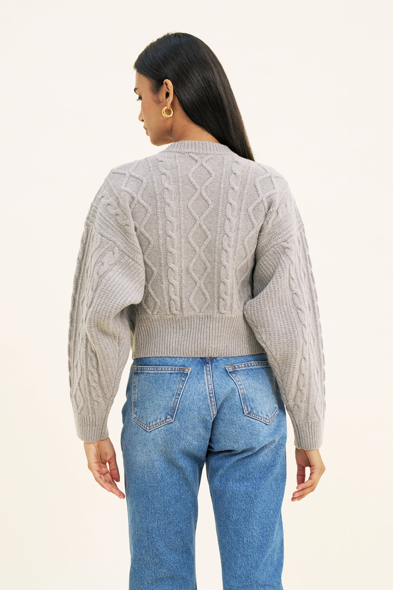The Clara is cute and cool all in one, with a cropped length and balloon sleeve, she nods to an 80's silhouette. Wear her with jeans or tailored trousers. 100% RWS certified Merino Wool. Model wears size S, she is 5'9 / 180cm.