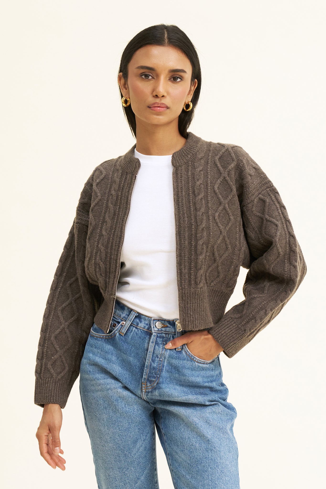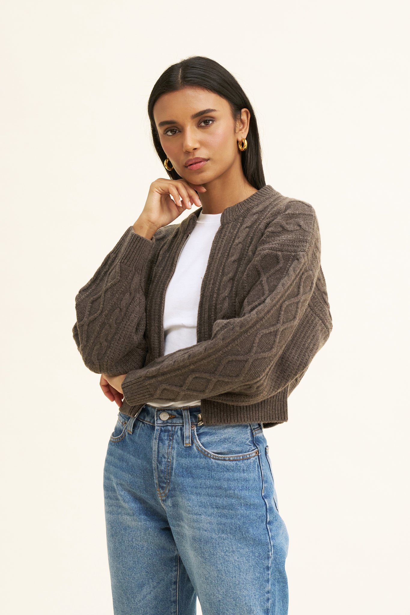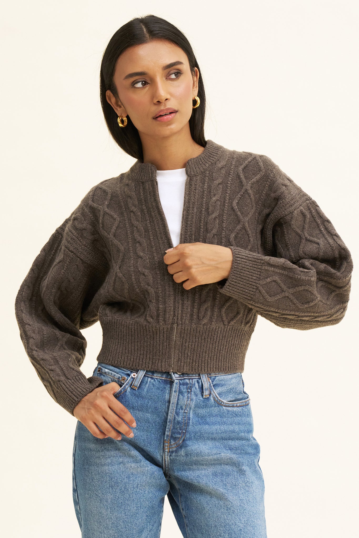 The Clara is cute and cool all in one, with a cropped length and balloon sleeve, she nods to an 80's silhouette. Wear her with jeans or tailored trousers. 100% RWS certified Merino Wool. Model wears size S, she is 5'9 / 180cm.