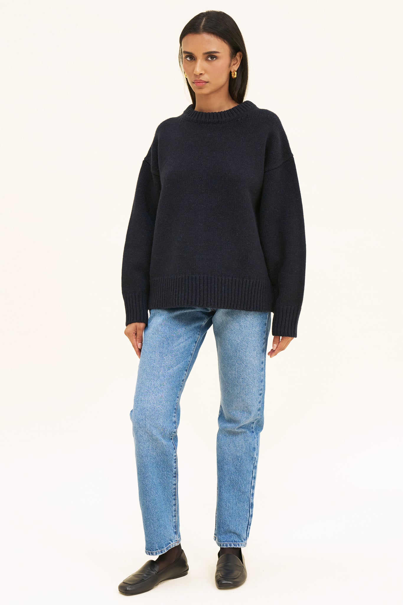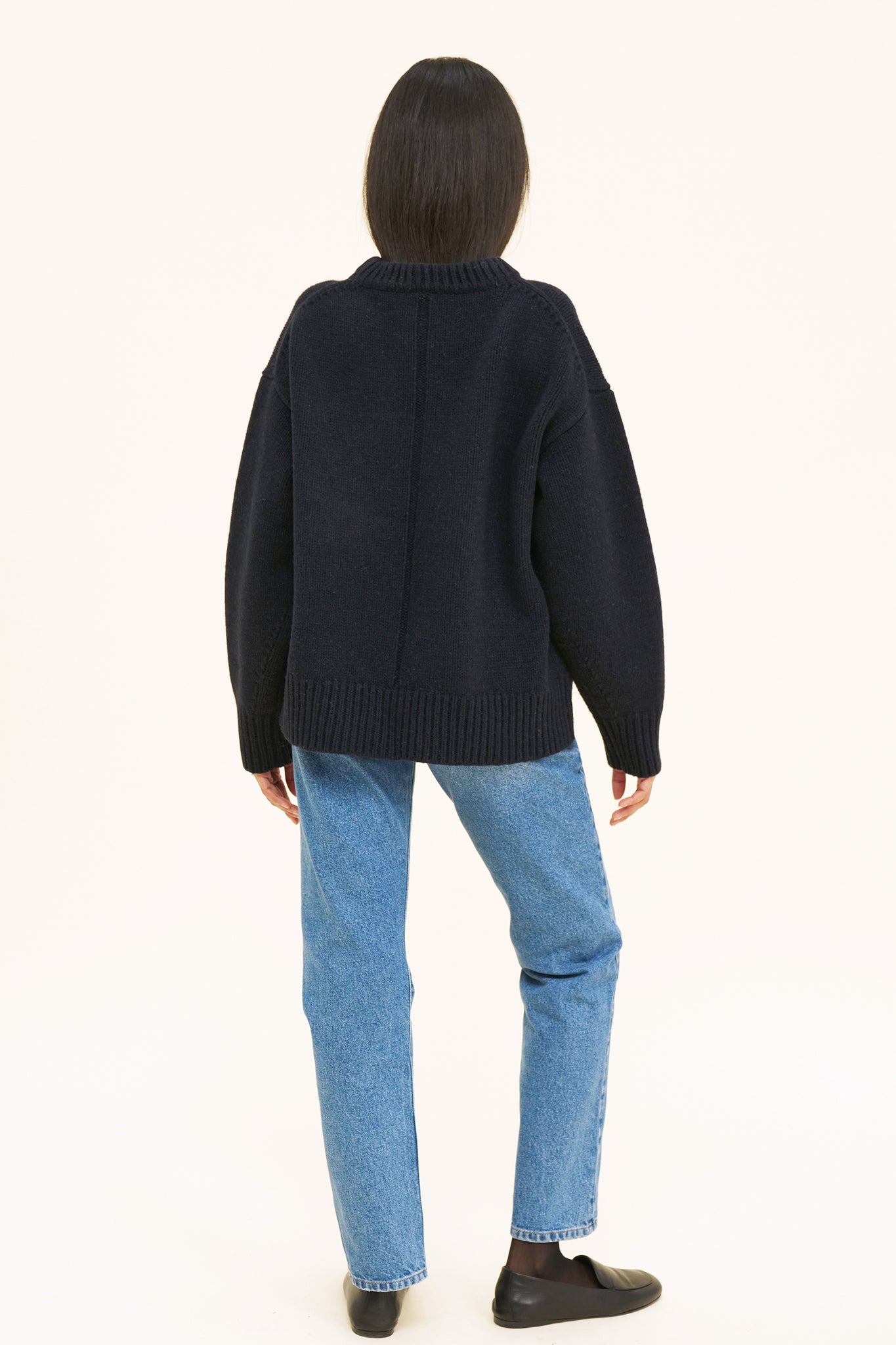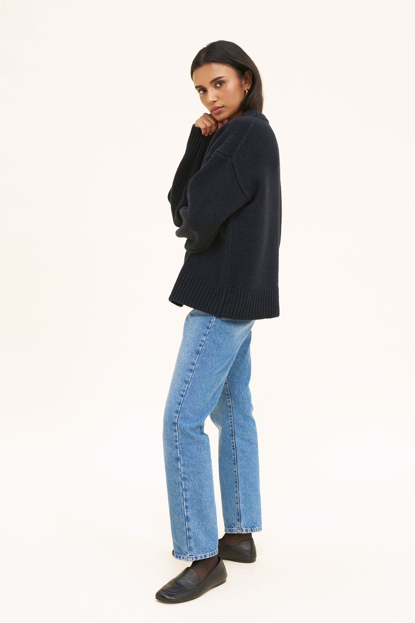 Meet Evelyn, the oversized boyfriend knit every capsule wardrobe needs. Simple but with all the right details. 100% RWS certified Merino Wool. Model wears size M, she is 5'9 / 180cm.