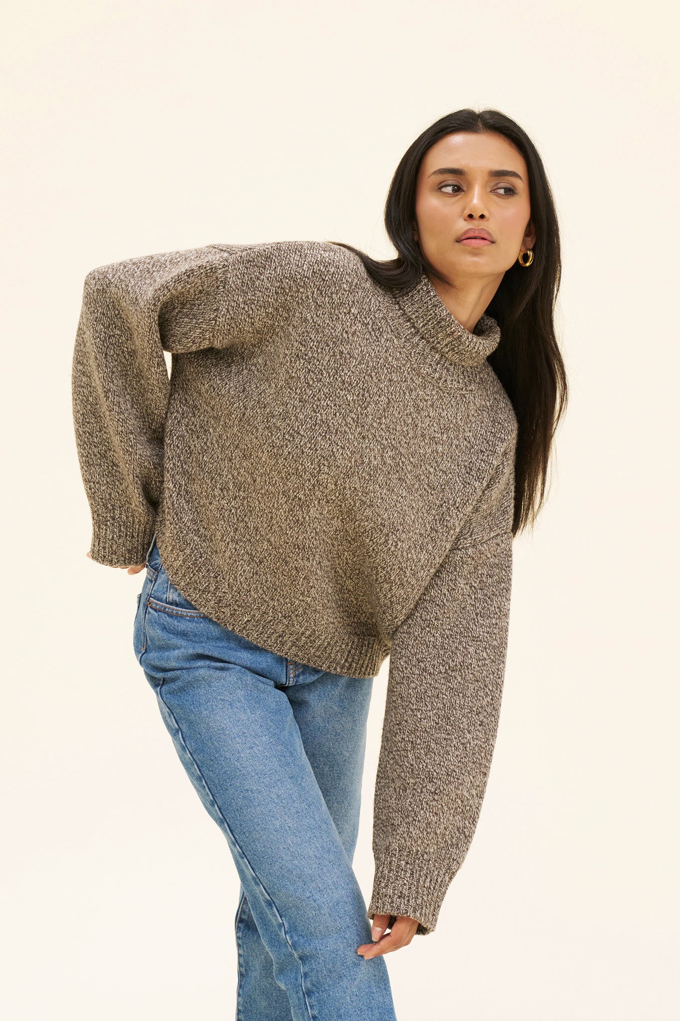 The Hailey is an oversized, high neck dream knit. Made for when you need complete comfort and to stay warm all day. Made from RWS certified Merino Wool. Model wears size M, she is 5'9 / 180cm.