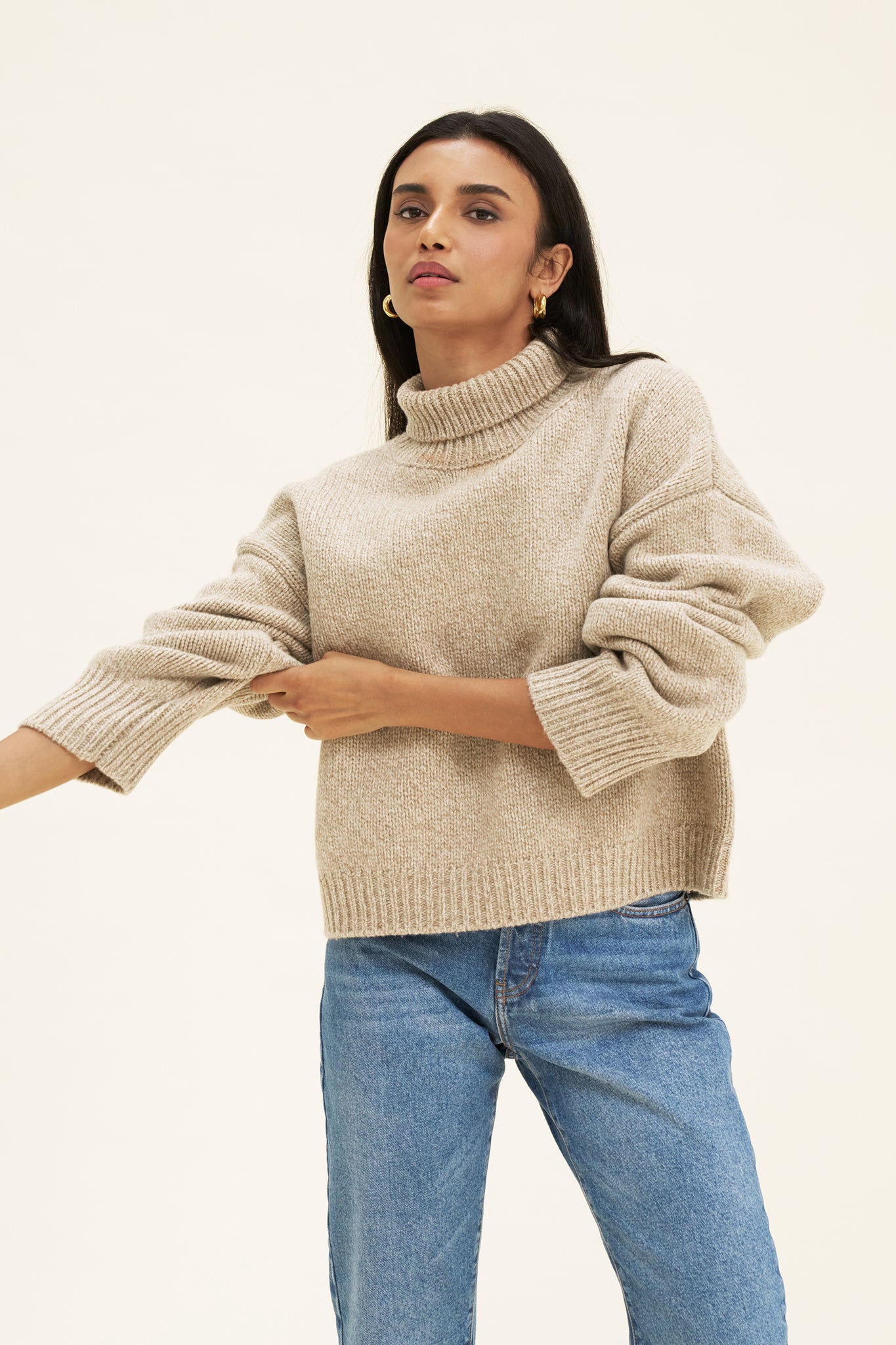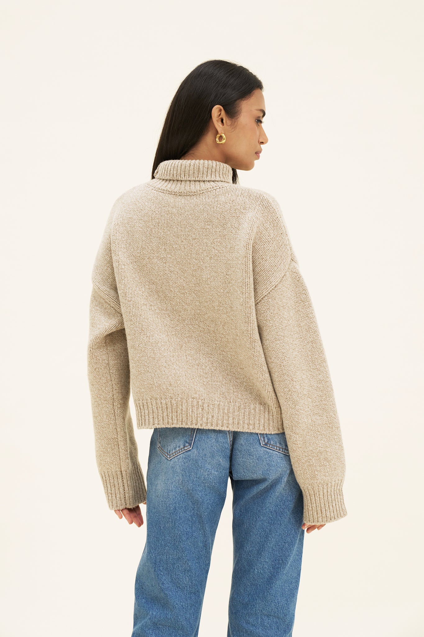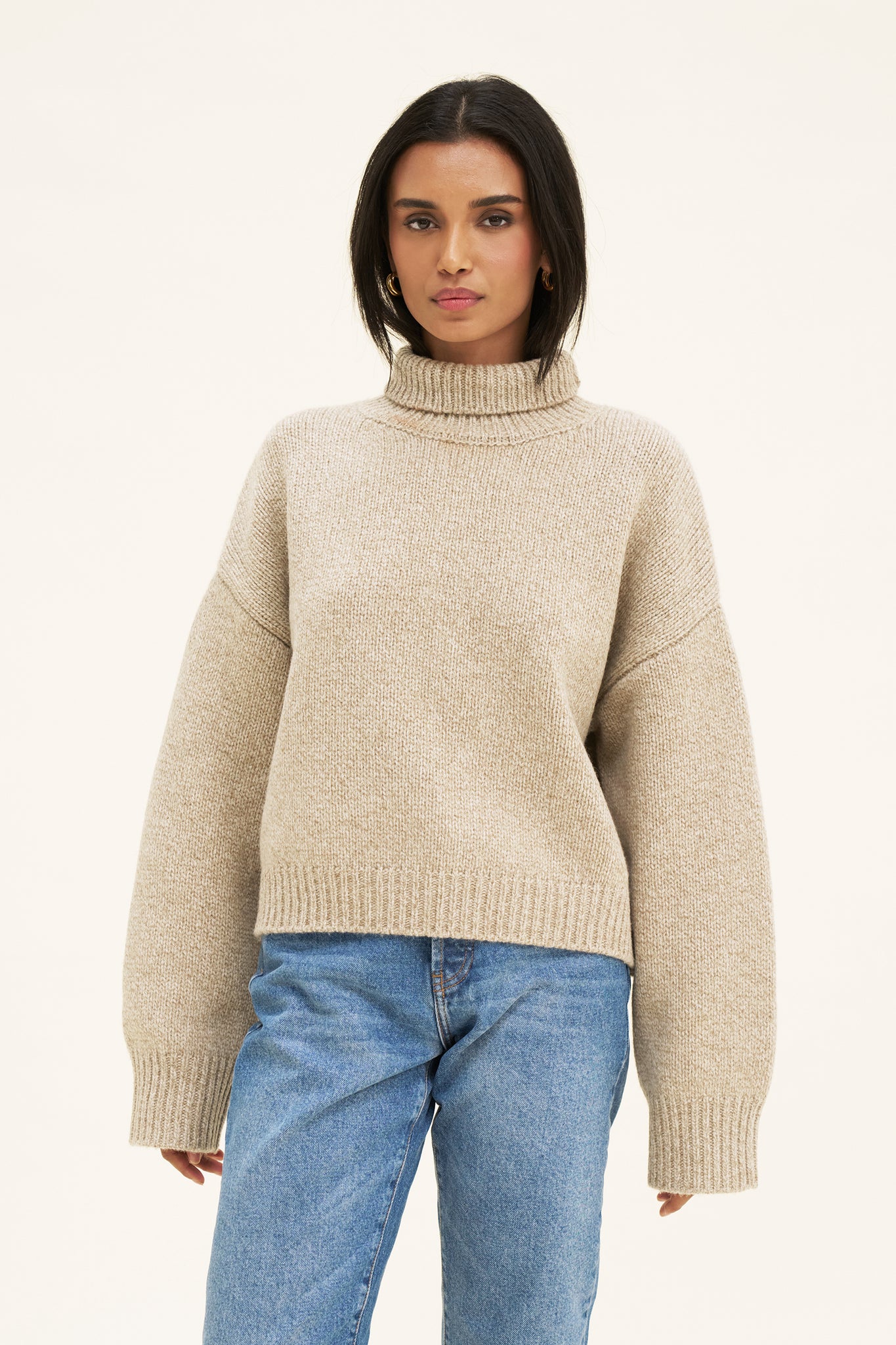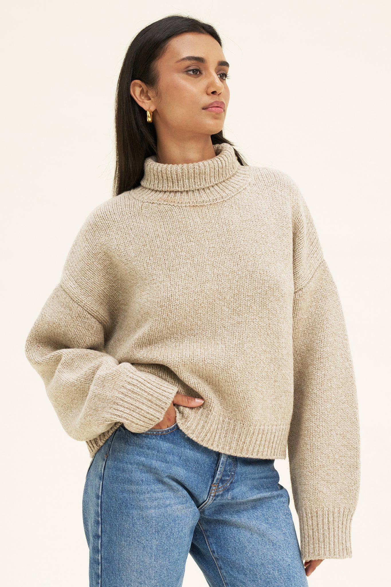 The Hailey is an oversized, high neck dream knit. Made for when you need complete comfort and to stay warm all day. Made from RWS certified Merino Wool. Model wears size M, she is 5'9 / 180cm.