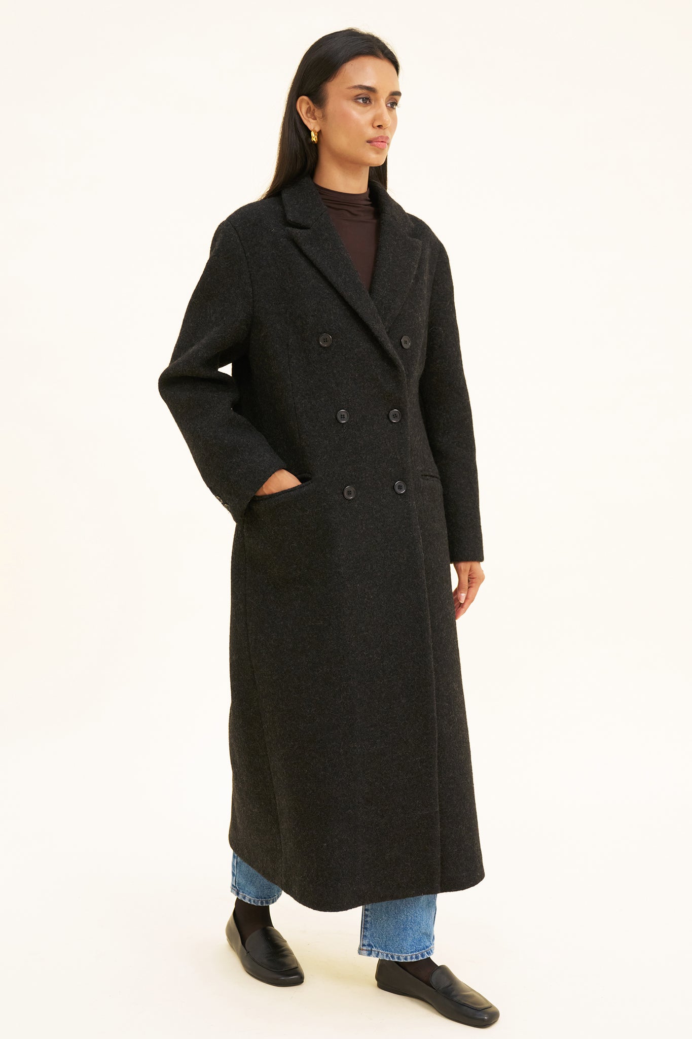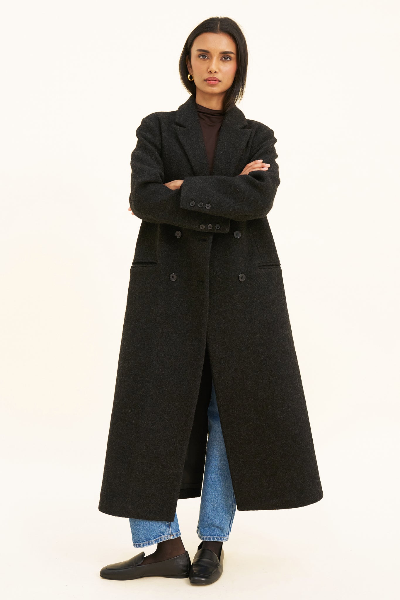 The Madison is designed with a menswear silhouette, think oversized car coat. She's the perfect winter throw on to add edge to any look from day to night. Made from 100% Wool. Model wears size S and is 5'9 / 180cm.